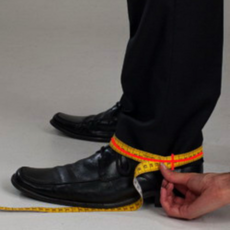 Wrap the measuring tape around the bottom hem of the pant leg (the cuff) to measure its circumference, ensuring the tape is snug but not tight.