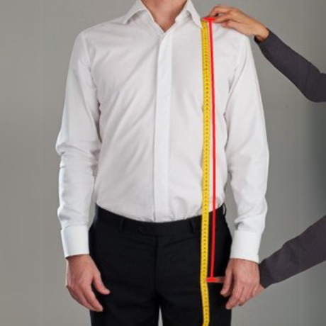 Place the measuring tape at the point where the shoulder seam meets the collar and measure vertically down to the endpoint of your crotch.