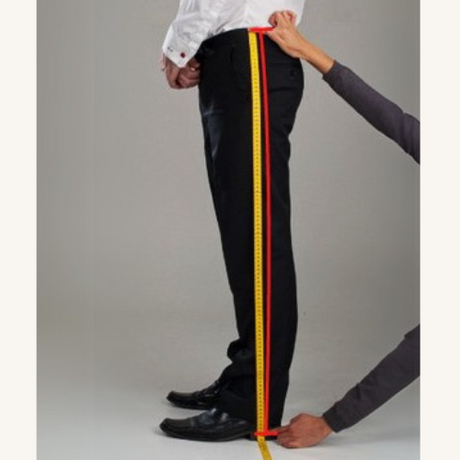 Place the measuring tape along the left side of your leg, starting from the top of the waistband and measuring down to the ankle.