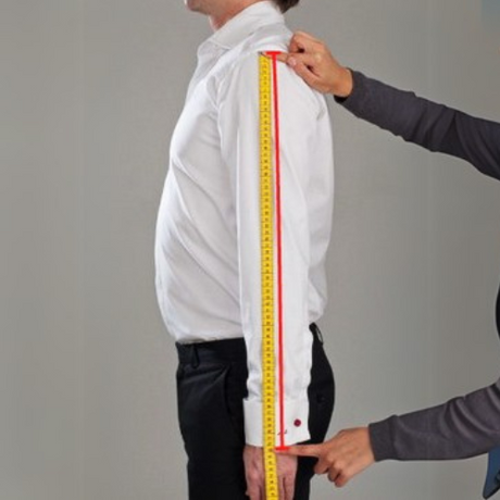 Place the measuring tape at the shoulder and measure down to the point where you want the cuff to end.
